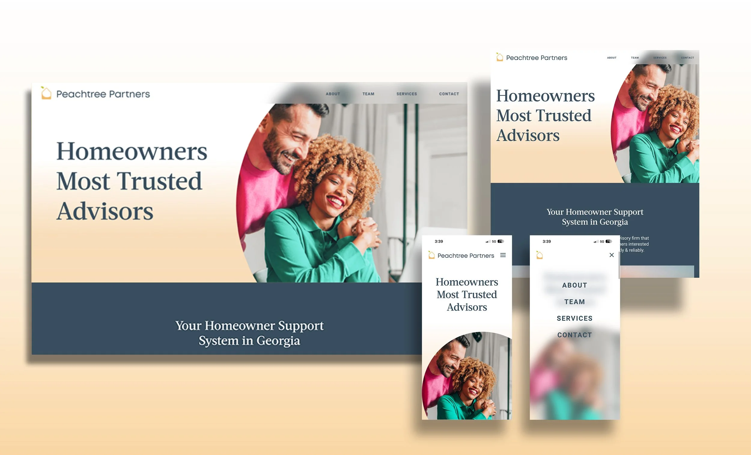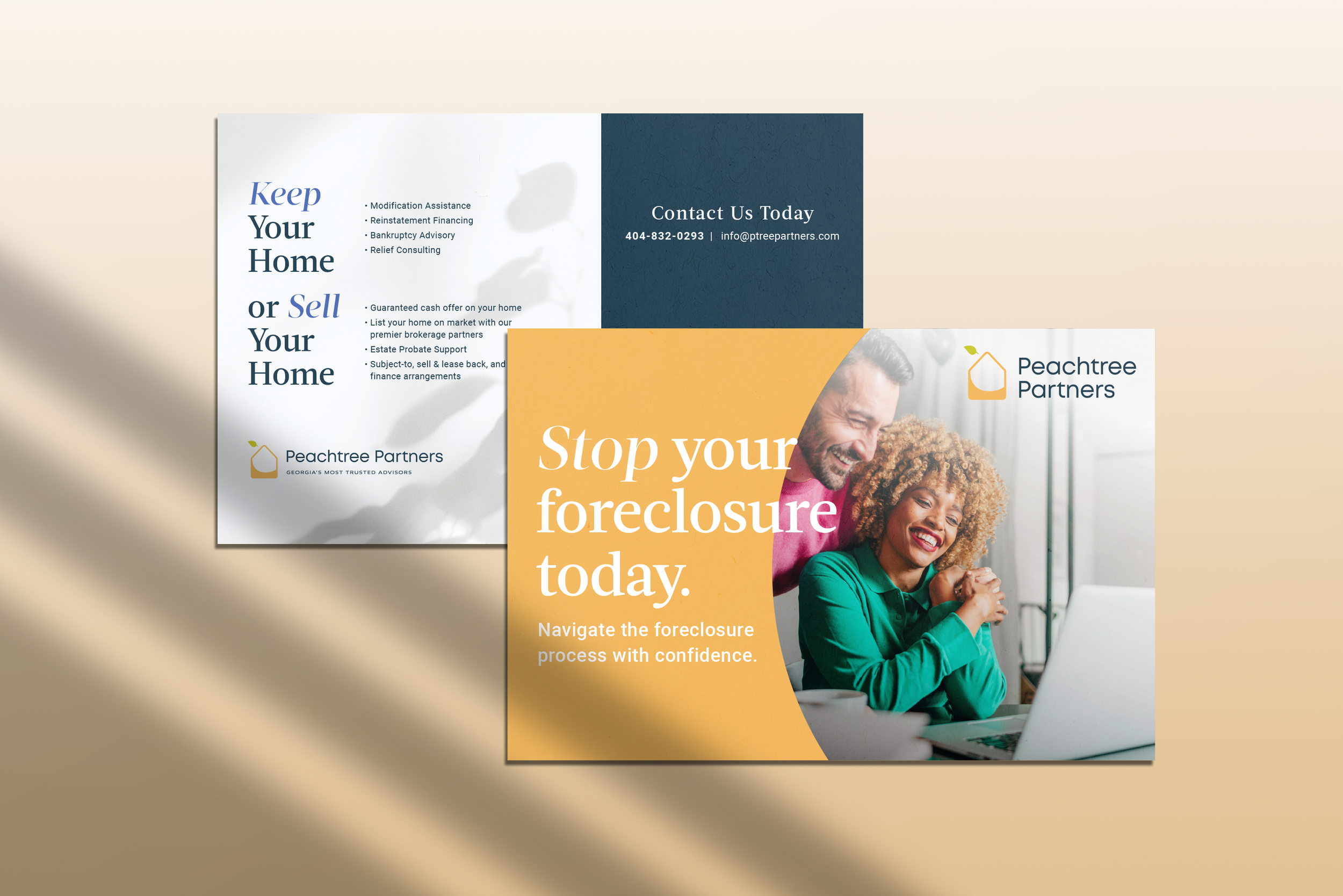 Peachtree Partners is a Georgia-based real estate advisory firm that provides tailored solutions for homeowners dealing with various property challenges. Their services include guiding clients through complex situations and offering personalized support to help them achieve their real estate goals. Sophisticated yet friendly, the visual identity for Peachtree Partners reinforces their reputation as a trustworthy and client-focused firm.